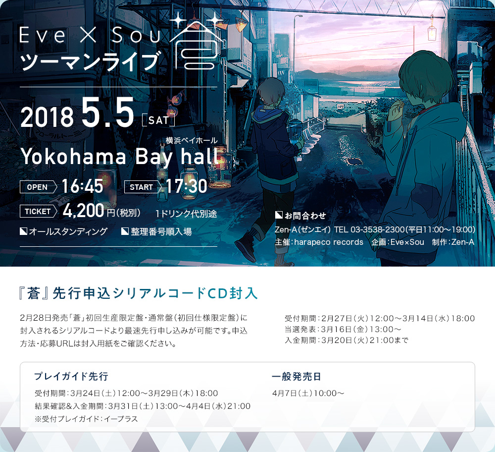 - Eve×Souツーマンライブ『蒼』チケット一般発売のお知らせ。